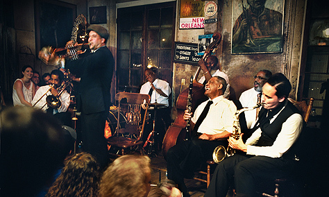 Por la noche recomendamos probar en algún restaurante la famosa gastronomía cajún (mezcla de comida francesa, española y caribeña) y disfrutar de la música en vivo en alguno de los garitos; Preservation Hall (es muy auténtico, pero si no se compra la entrada con antelación, será difícil entrar...), Pat O'Brien's (un irlandés muy concurrido donde hacen duelo de pianos), Fritzel's European Jazz Bar, Blue Nile (en Frenchmen Street, una zona más para locales). Alojamiento en Nueva Orleáns.