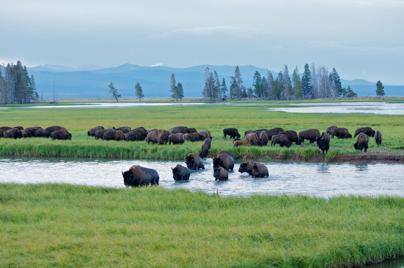 Hoy nos pondremos en marcha hacia el Gran Parque Nacional de los Estados Unidos, Yellowstone, pero antes atravesaremos el Parque Nacional Grand Teton, un espectacular espacio de alta montaña y bosques impresionantes. Alojamiento en Yellowstone.
